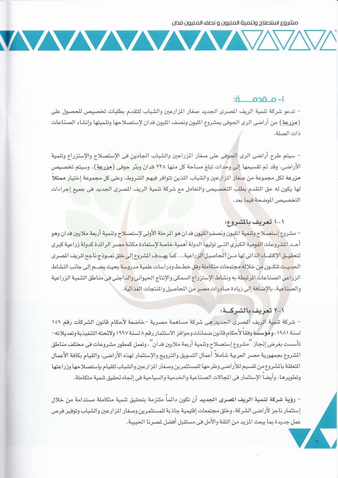 شرح التقدم للمشروع القومى لتنمية المليون ونصف المليون فدان للشباب