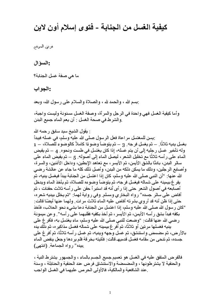 كيفية الغسل من الجنابة فتوى إسلام أون لاين