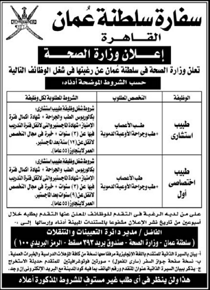 وظائف وزارة الصحة في سلطنة عمان وظائف خاليه